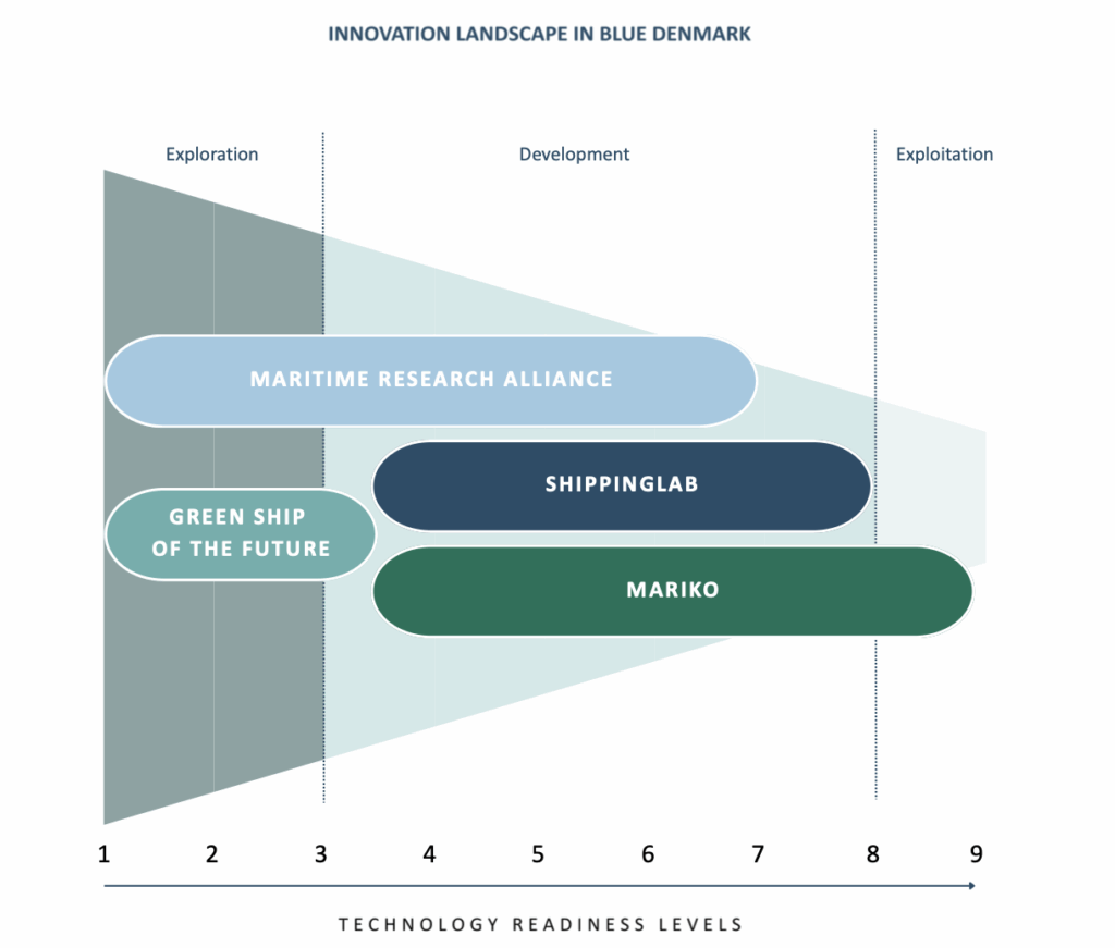 ShippingLab, Maritime Research Alliance (MRA), MARIKO and Green Ship of the Future (GSF) each play an important role in the Danish maritime innovation ecosystem. We operate in different parts of the value chain – from basic research to practice-oriented development, and testing close to operational deployment.
